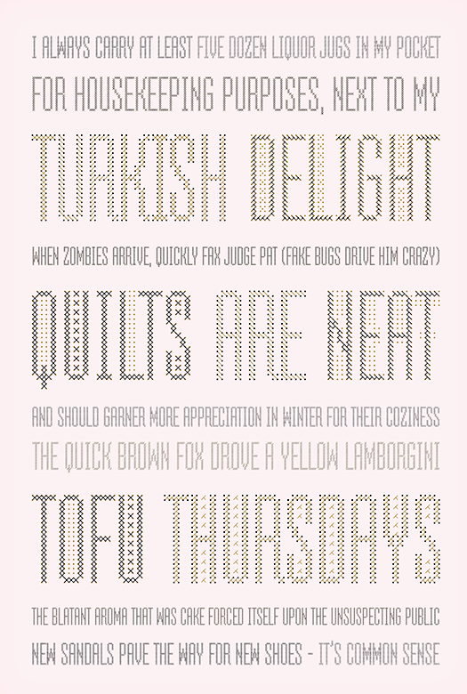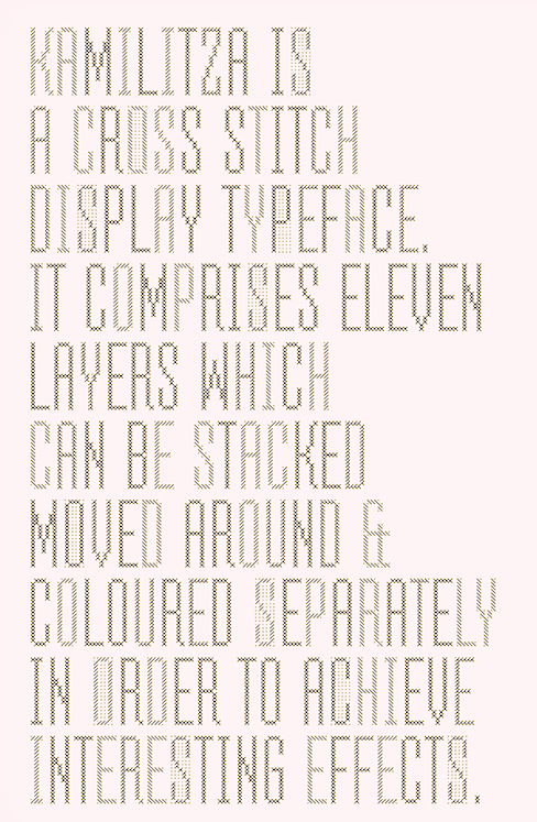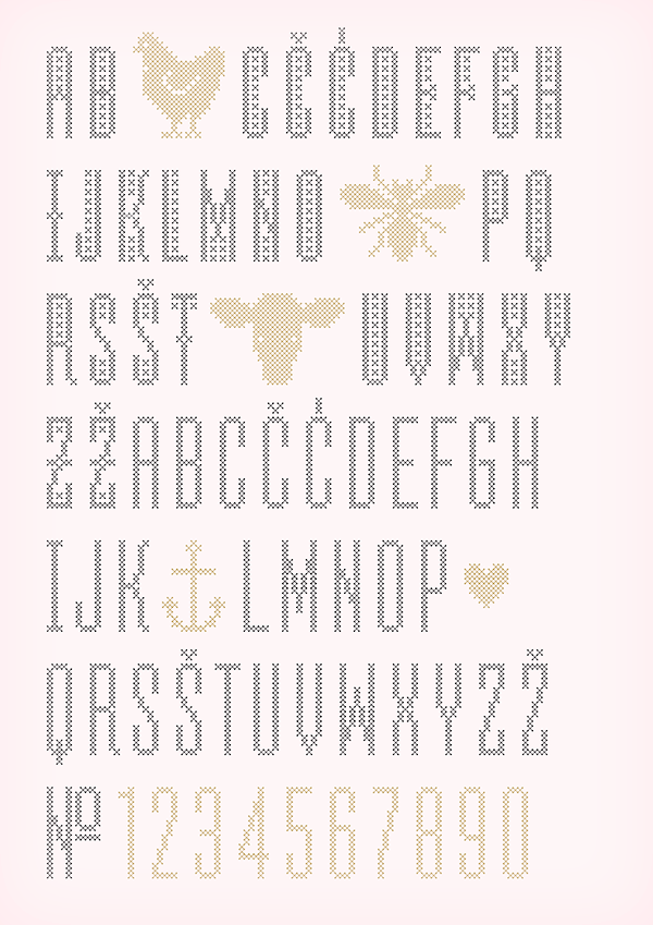 Marianna Orsho (or Marijana Orsolic) is an Australian / Serbian graphic and type designer, b. 1987. Classically trained as a graphic artist, she completed her Masters Degree in Type Design and 2D Animation at the University of Arts in Belgrade. During TypeClinic 5 in 2012 in Trenta, Slovenia, she created the multiple master humanist sans typeface family Nioki and Nioki Italic, both for Latin and Cyrillic. Free download. Other typefaces by her include Albi (2010) and Eta (2011). Now located in Sydney, Australia, she created Kamilitza (2014, a layered, condensed, all-caps cross stitch display typeface; free demo) and Globster (2014, a Treefrog-style typeface for Latin and Cyrillic). |