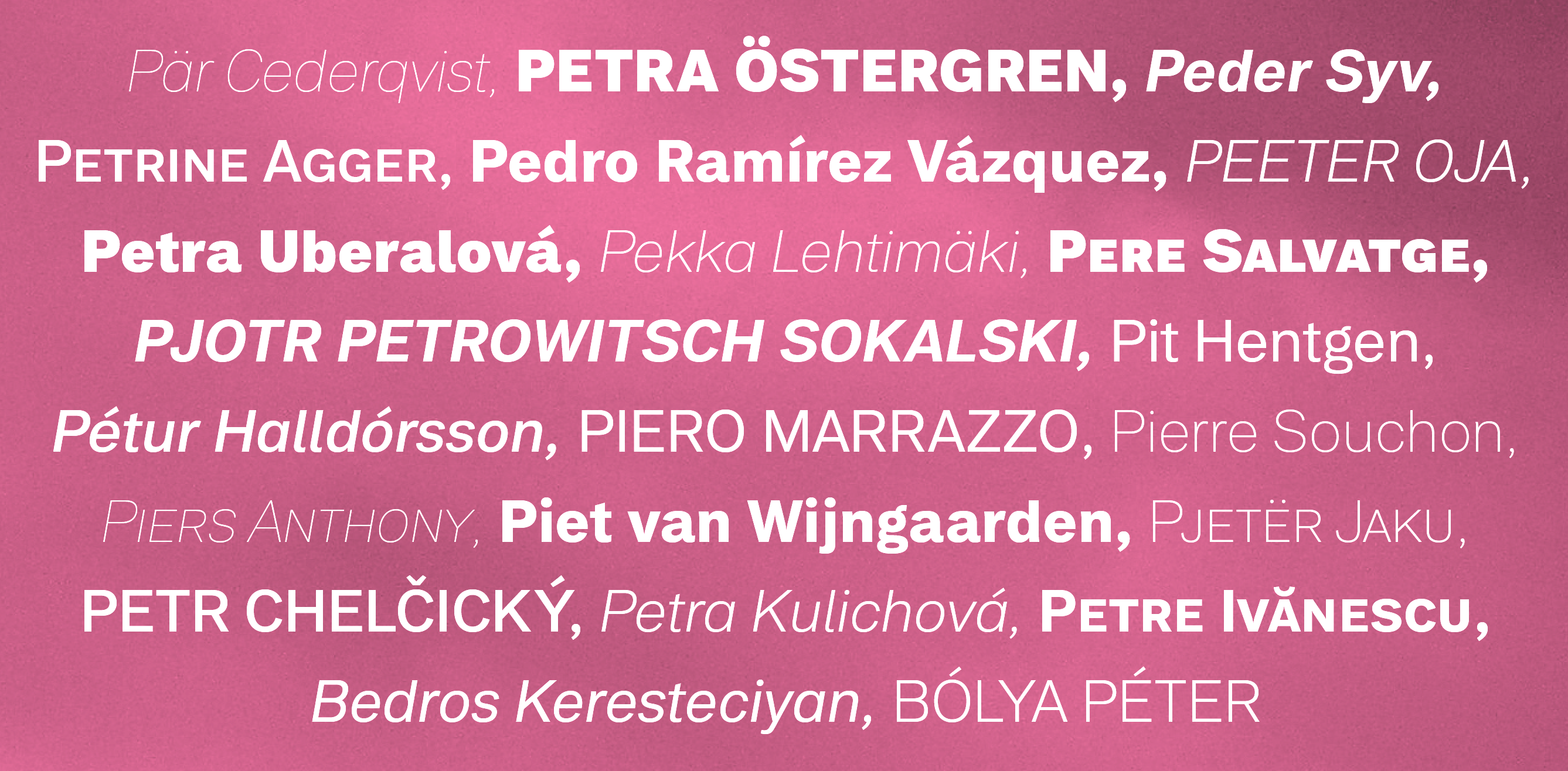German typefoundry, est. 2014 by Peter Lammert. Peter's typeface Peter (2014) is a neo-grotesque sans. Very basic, it shows humanist touches in the heavier weights. |