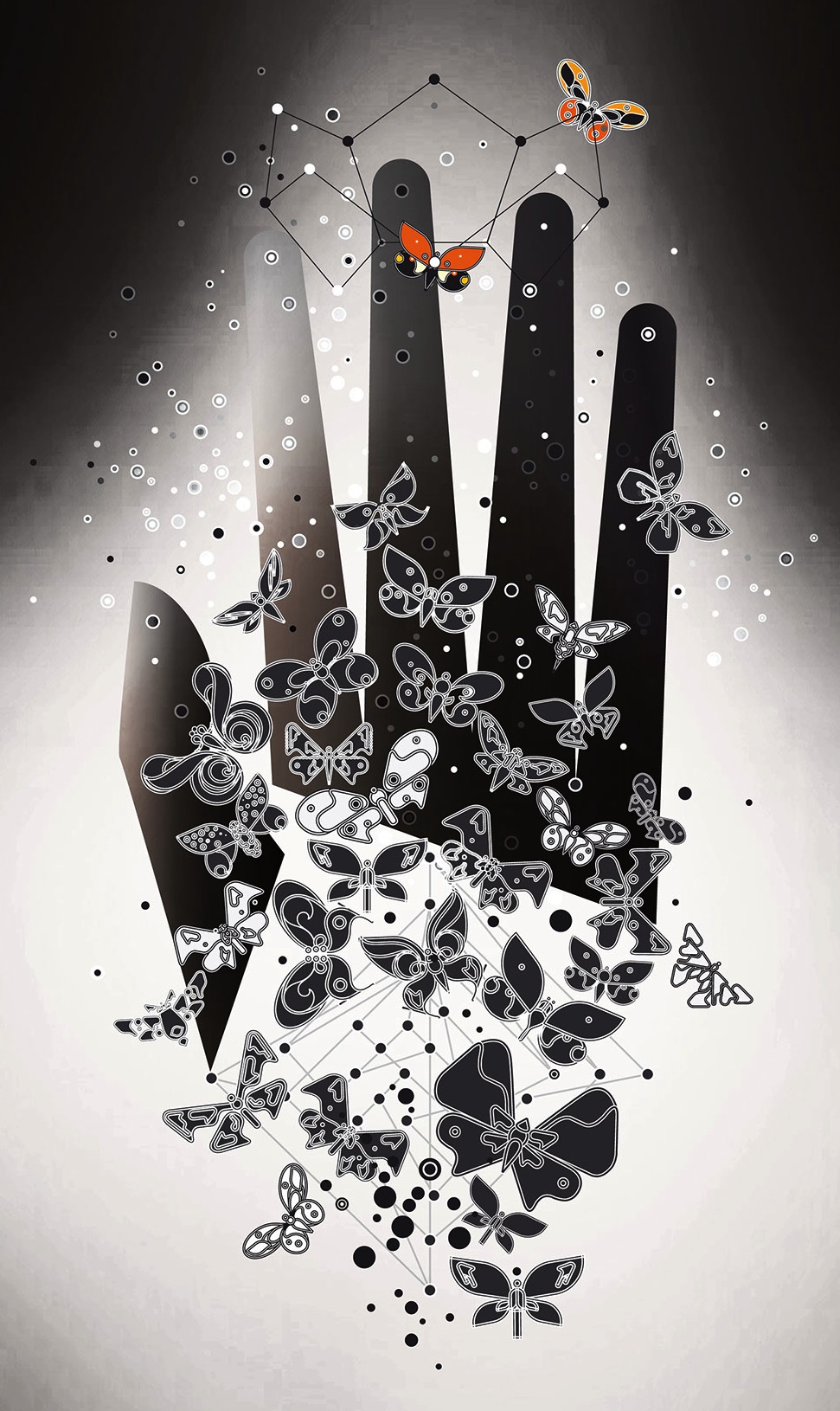 Paris-based designer who created several experimental geometric typefaces in a series called Monoide (2014). He also created Butterfly Alphabet (2014) and many awe-inspiring techno illustrations. Behance link. |
