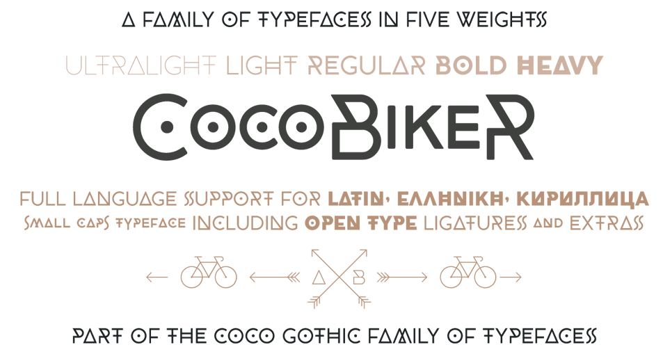 Hipster typefaces: Cocobiker (Cosimo Lorenzo Pancini and Bruno La Versa). Quirko (Shrenik Ganatra).
