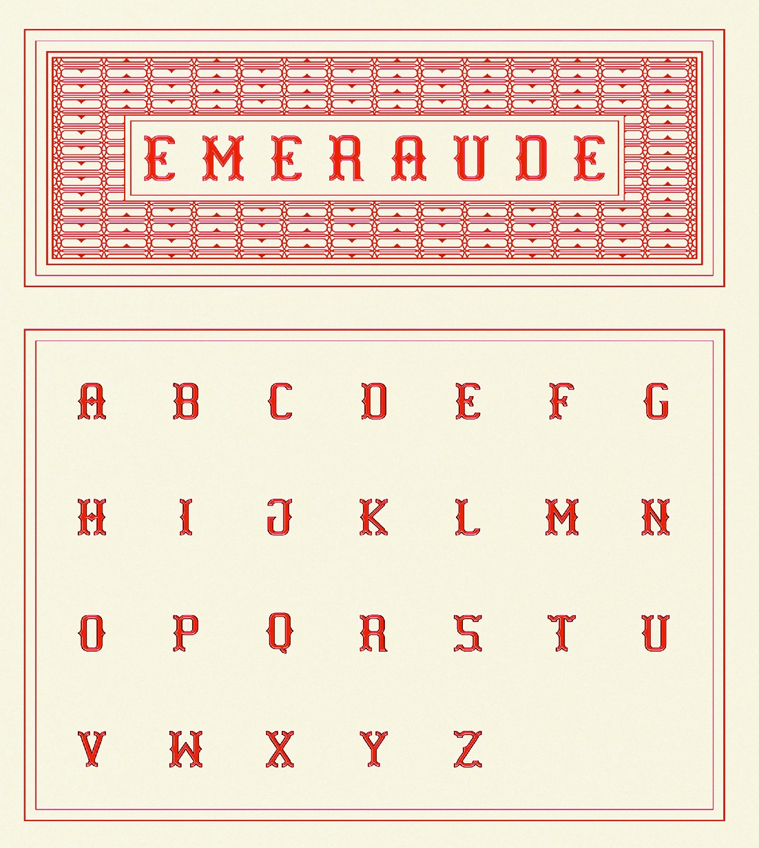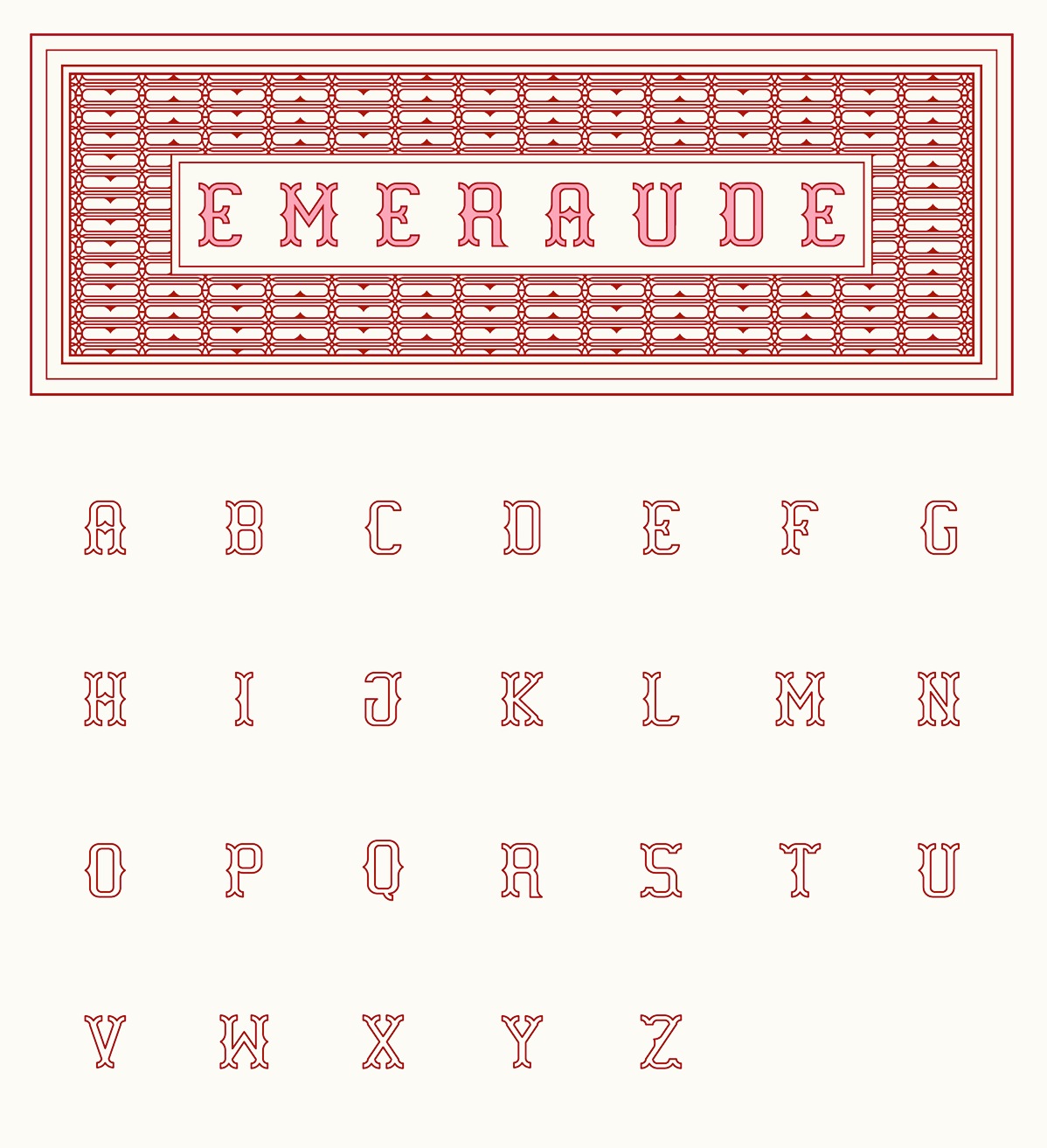Kuala Lumpur, Malaysia-based creator of the spurred vintage typeface Emeraude (2015). Behance link. |