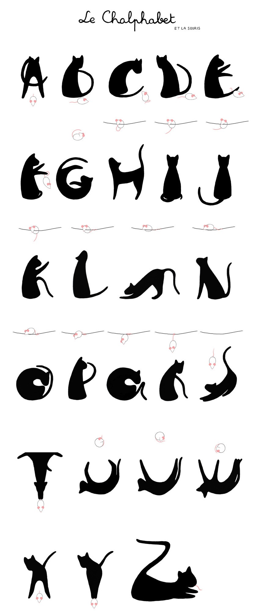 During her studies at Gobelins in Paris, Laura Tessier created the cat-themed all caps typeface Le Chaphabet (2015). |