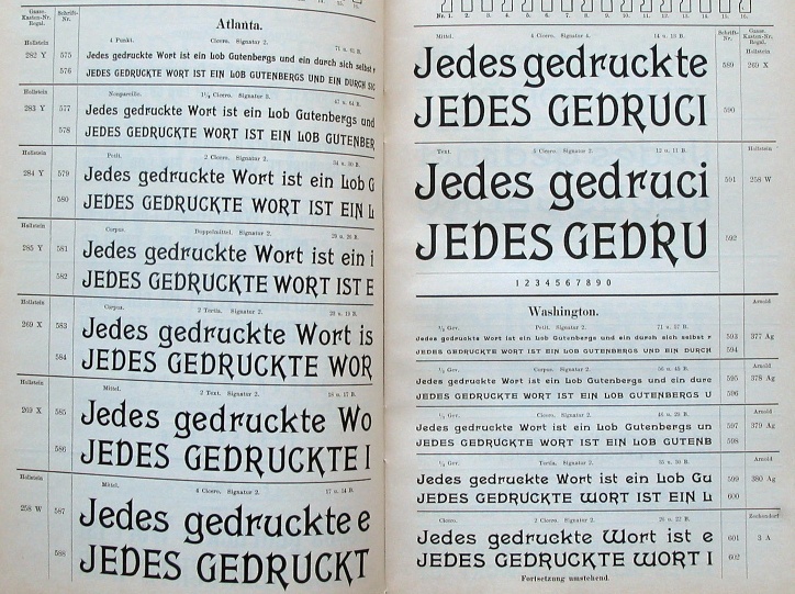 Left: Altgothisch. Right: the Victorian faces Atlanta and Washington. | ||||