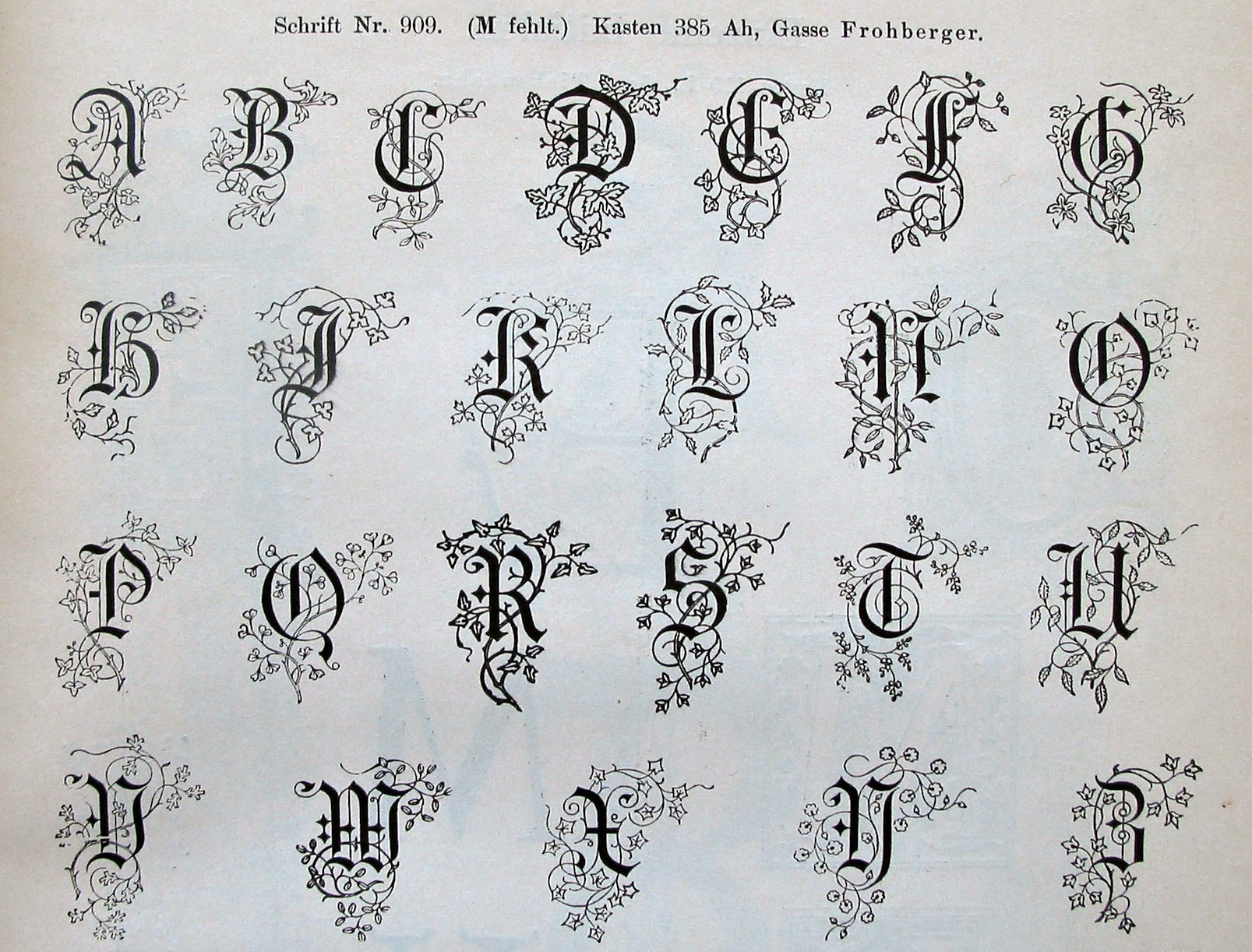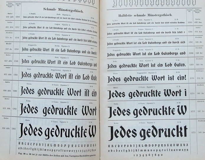 This is Schmale Münstergothisch. Luckily, in the blackletter genre, there is less opportunity to ruin the alphabet... | ||