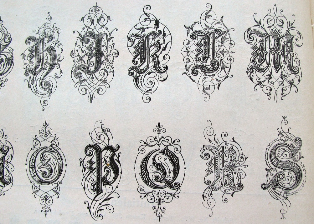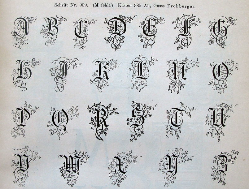 Left: Initialen. Right: a ronde, simply called Rund-Schriften. | ||||