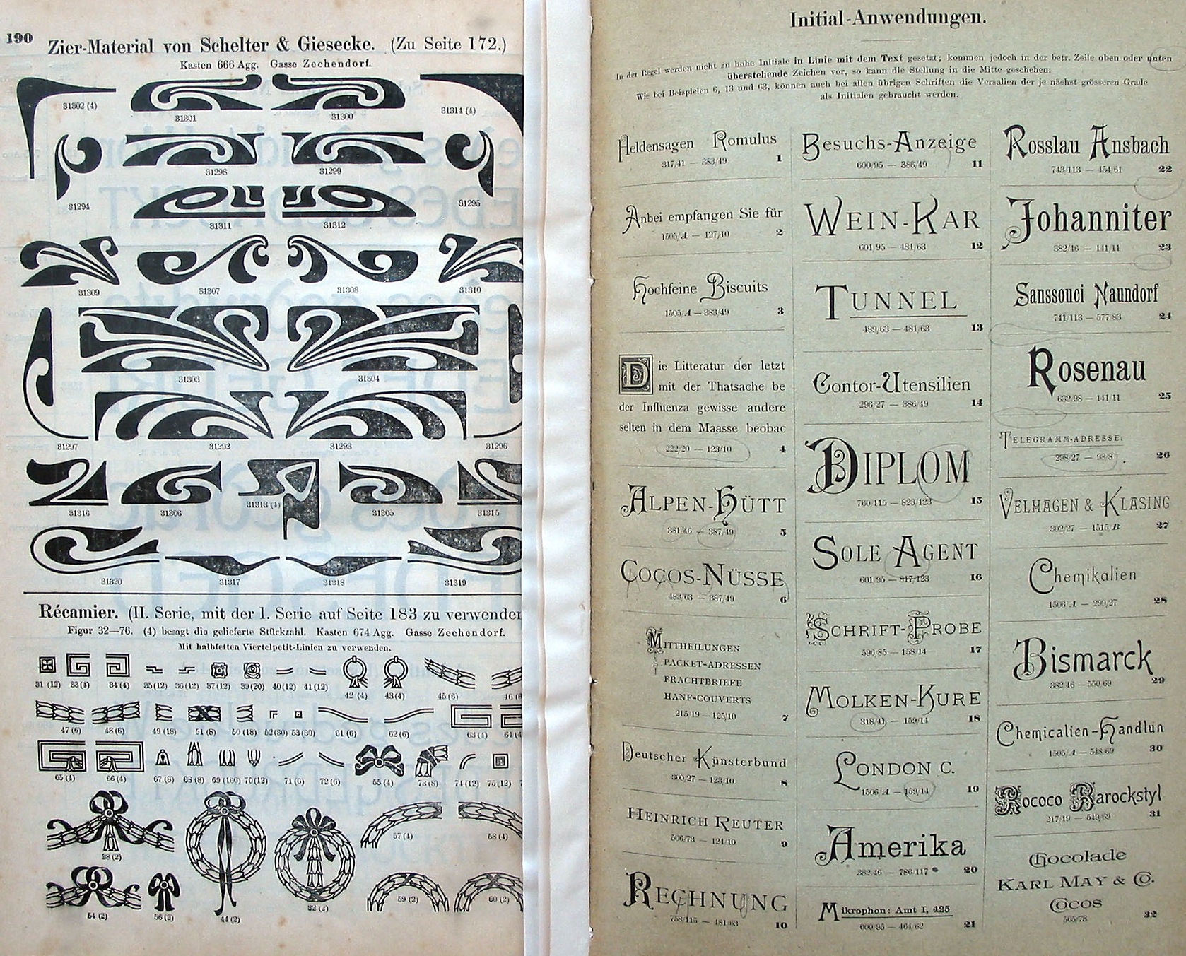 Left: More Verzierte Initialen, including Xylographia Initialen.