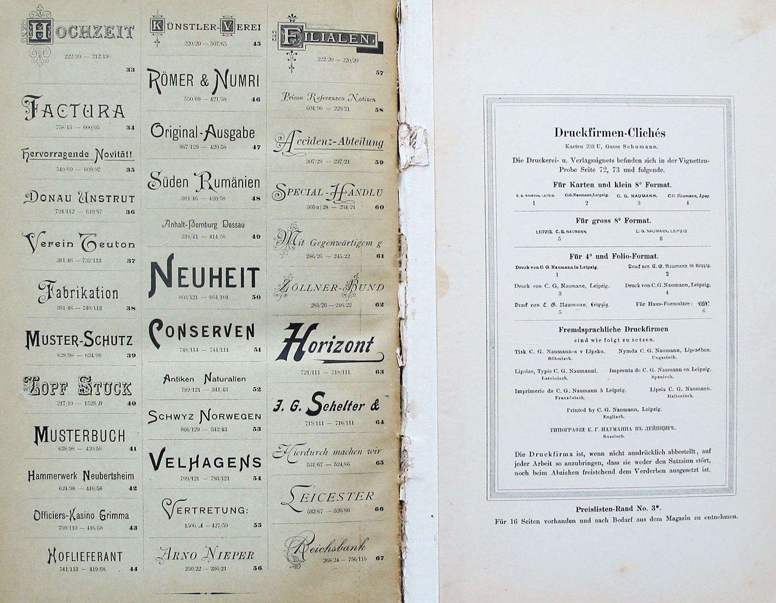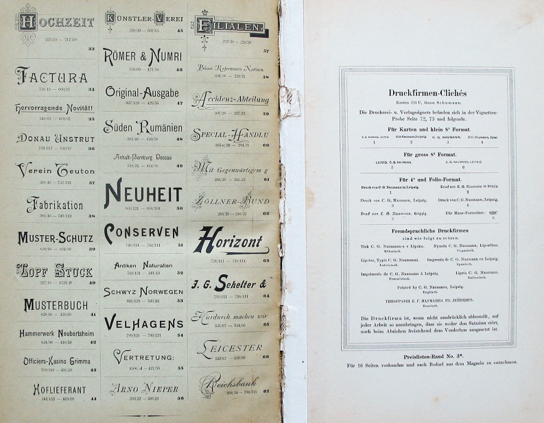 C.G. Naumann was a printer in Leipzig. Like most printers, they published a catalog of their fonts. | ||||||