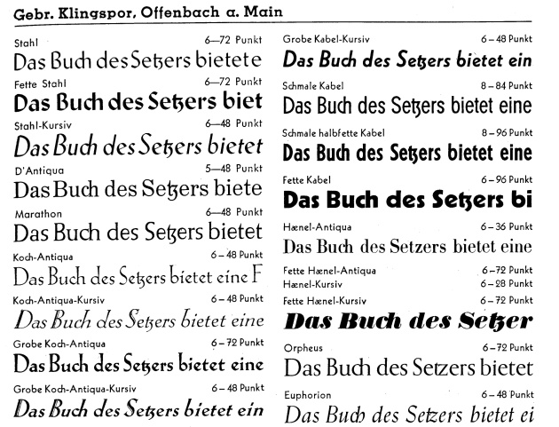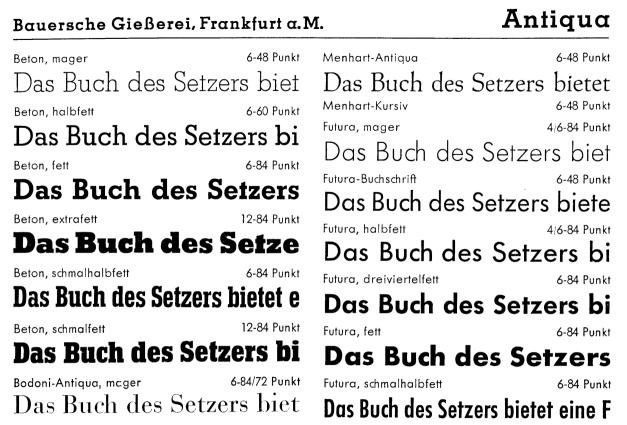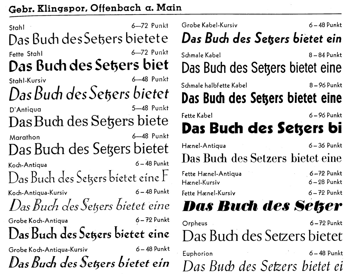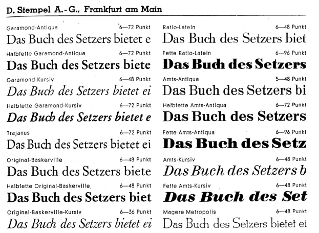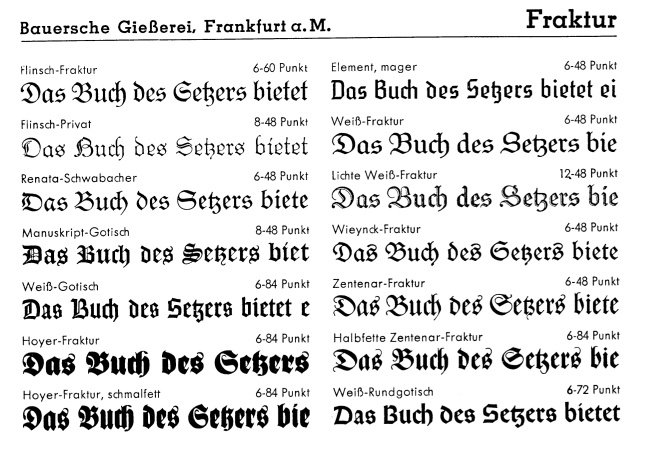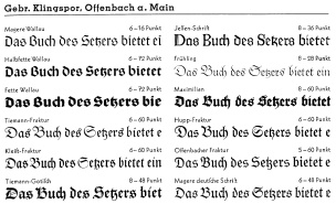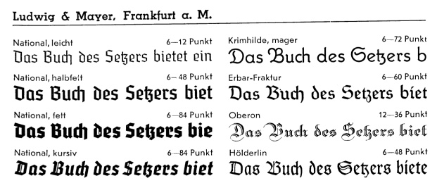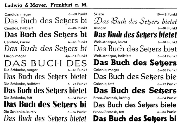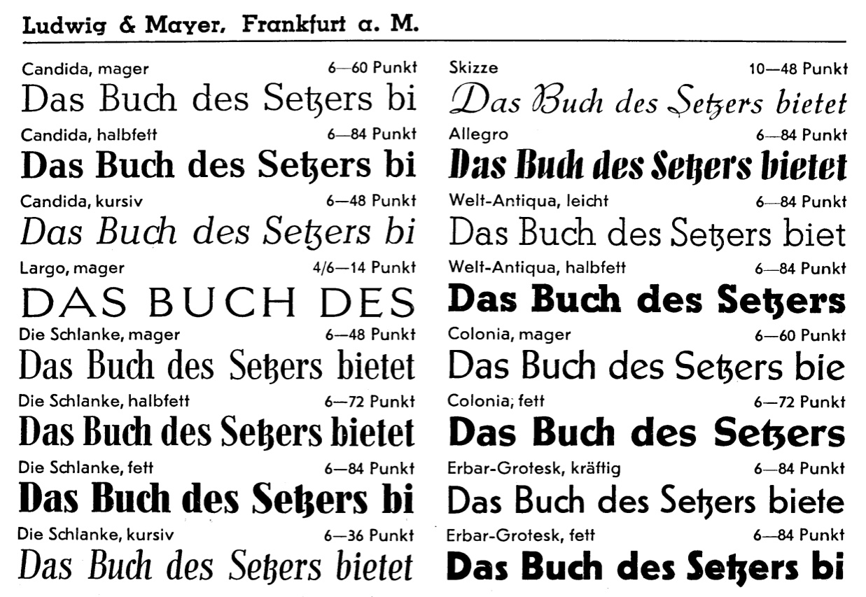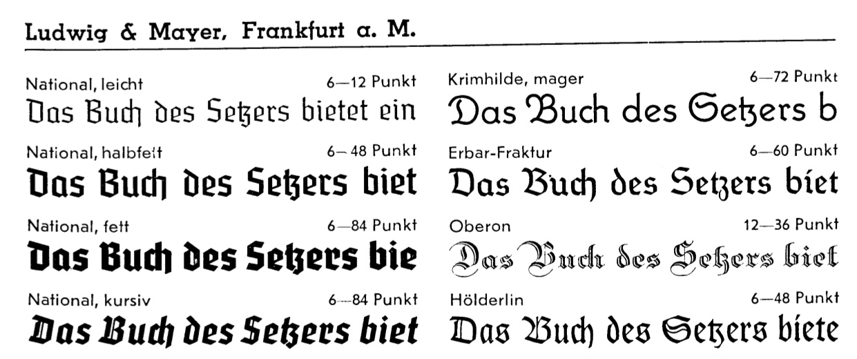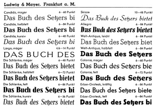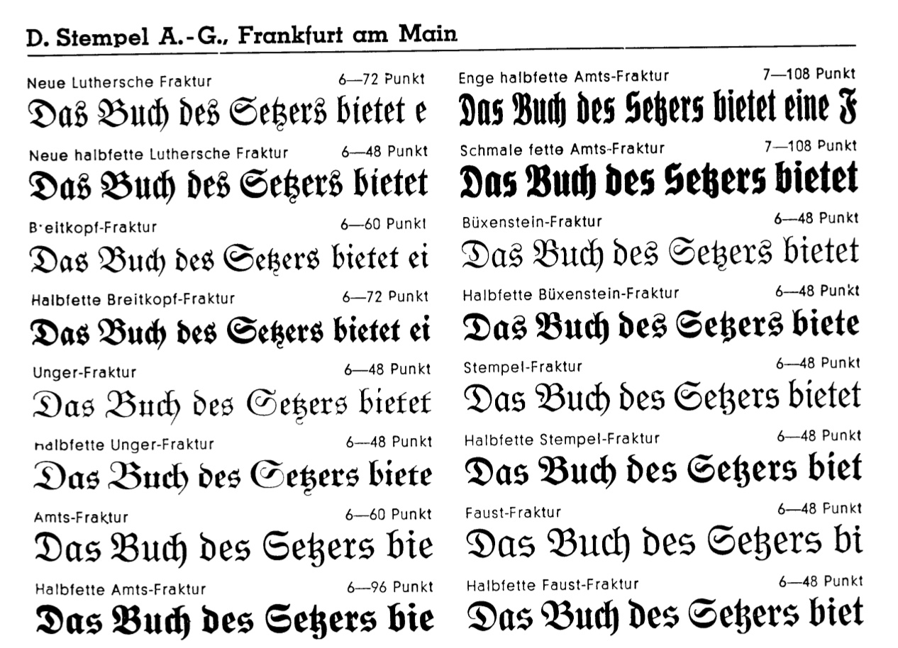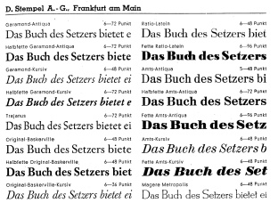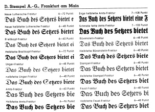 - From Frankfurt: Bauersche Giesserei, Ludwig & Mayer, D. Stempel.