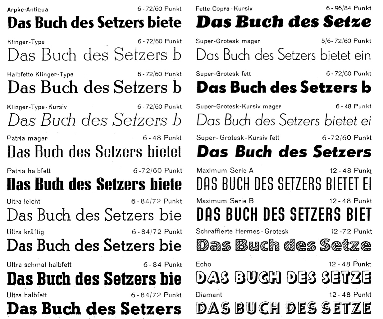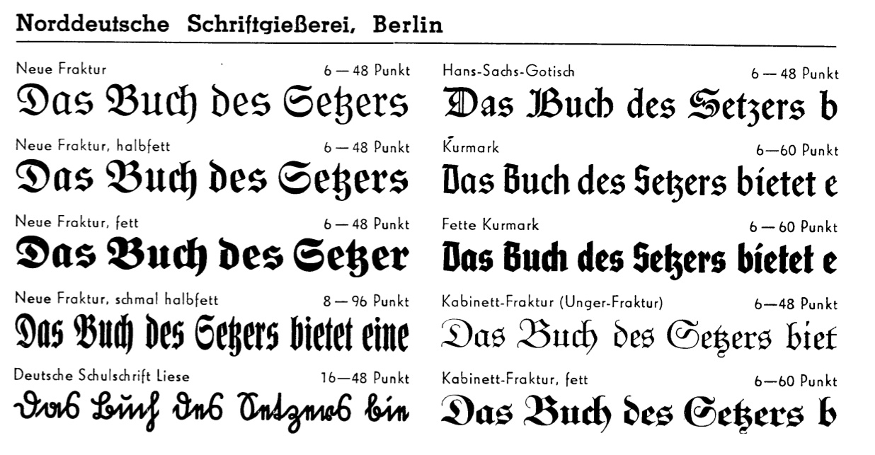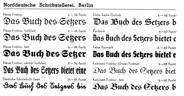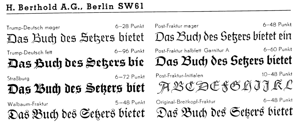 - From Berlin: H. Berthold, Norddeutsche Schriftgiesserei.