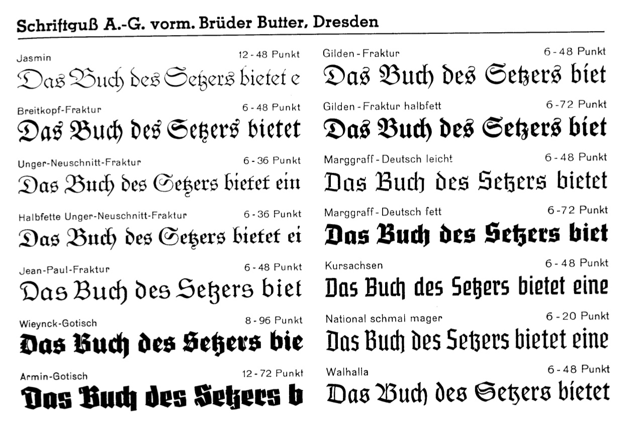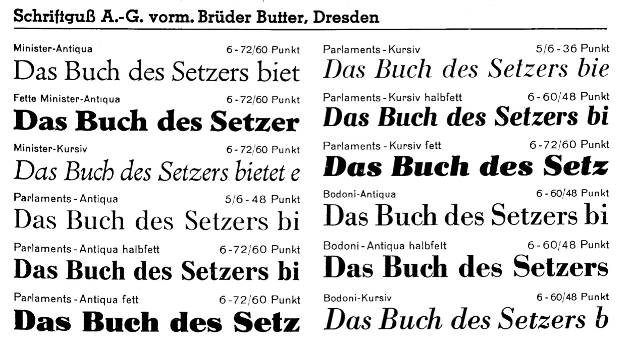 - From Dresden: Schrifguss AG (vorm. Brüder Butter).
