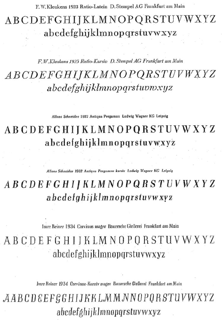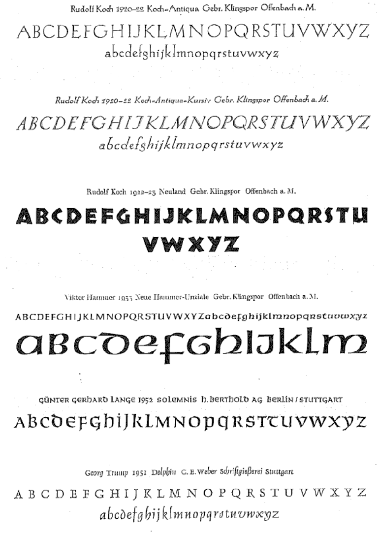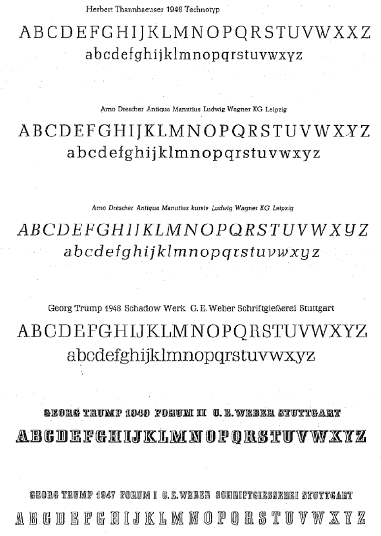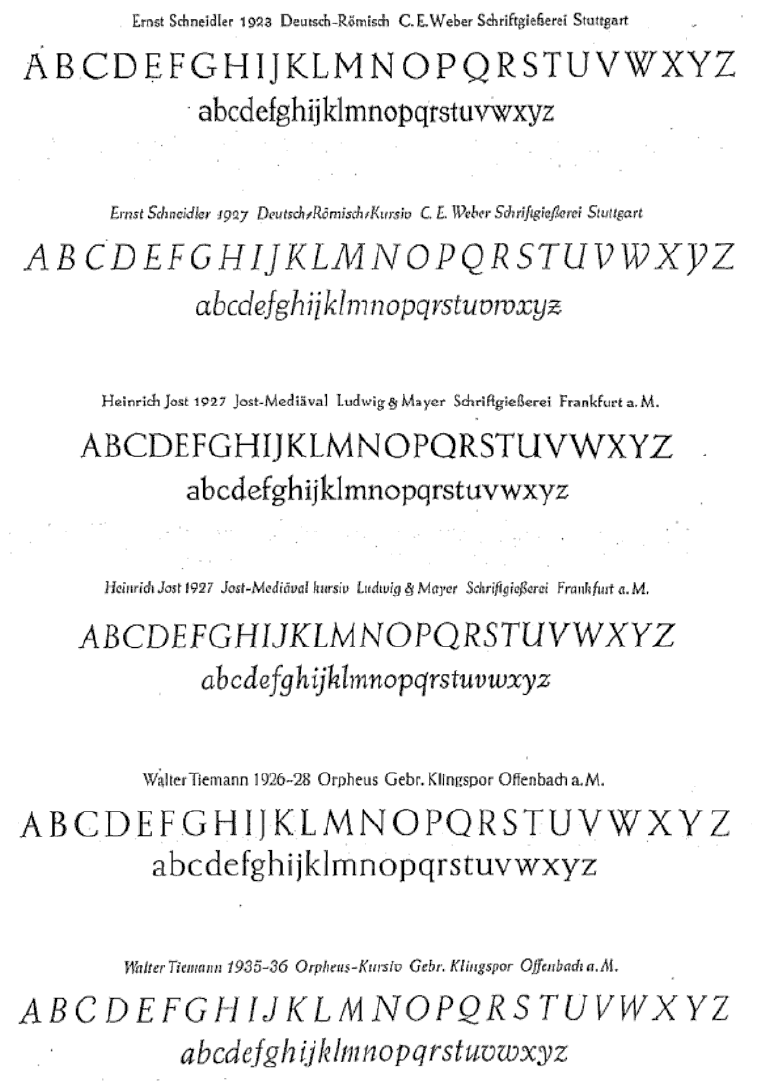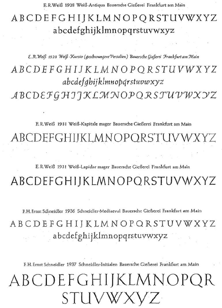 The type specimens found in one of the five volumes of Sonja Steiner-Welz's book published by Reinhard Welz Vermittler Verlag in Mannheim.