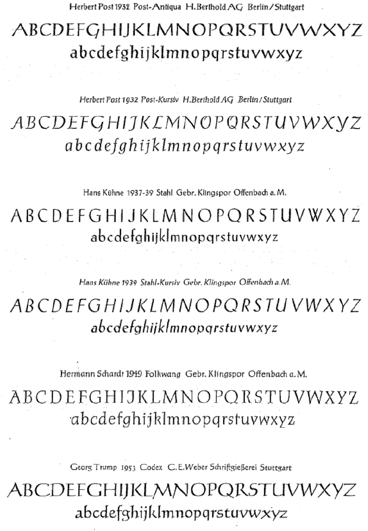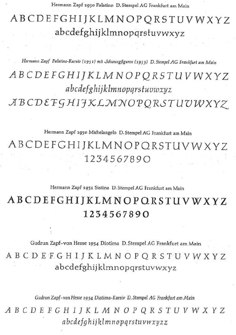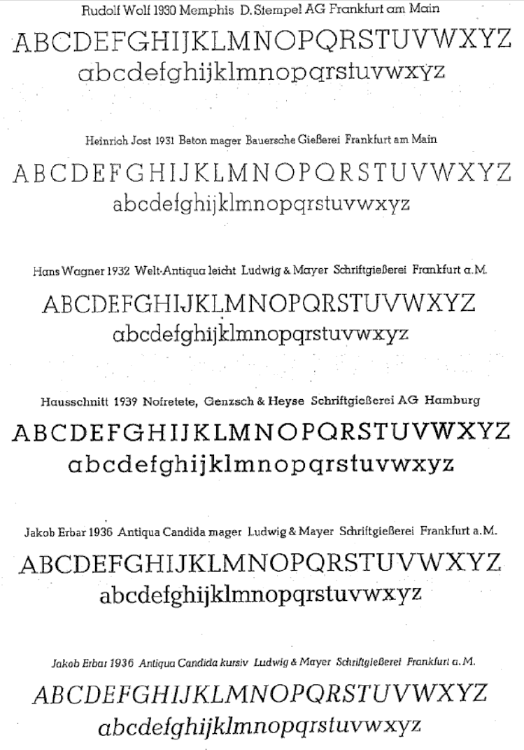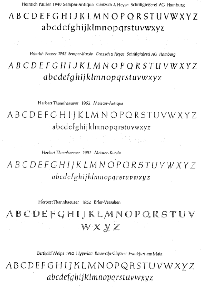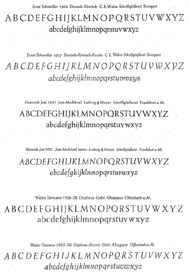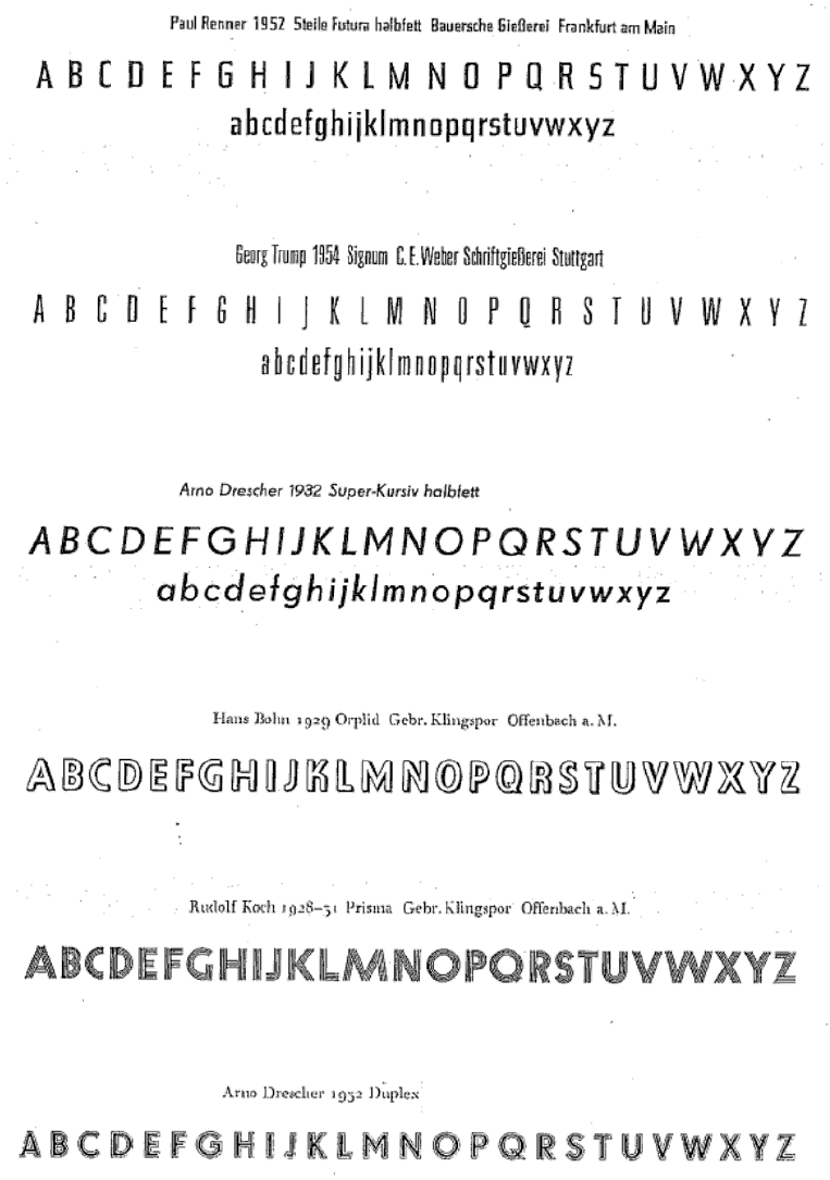 The type specimens found in one of the five volumes of Sonja Steiner-Welz's book published by Reinhard Welz Vermittler Verlag in Mannheim.