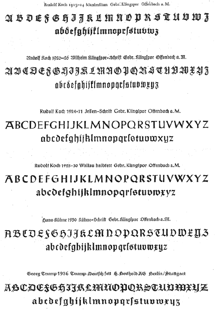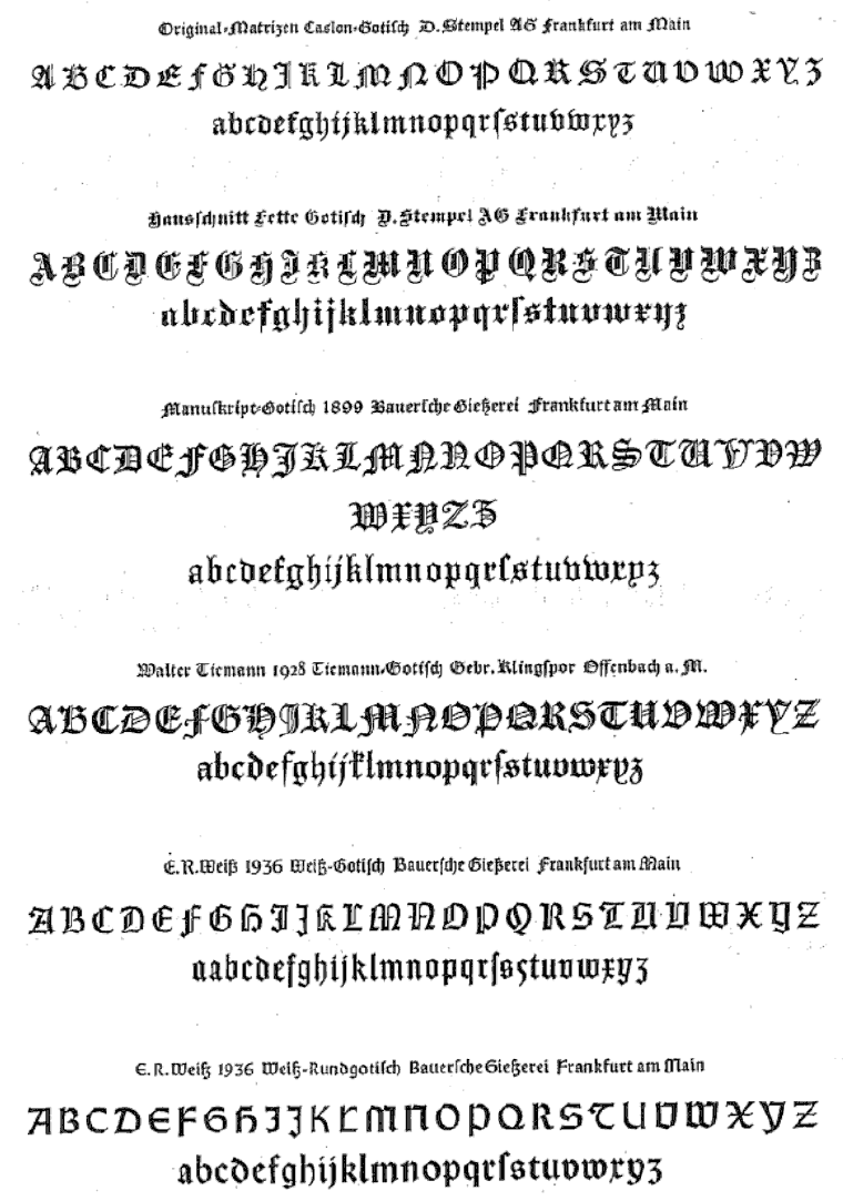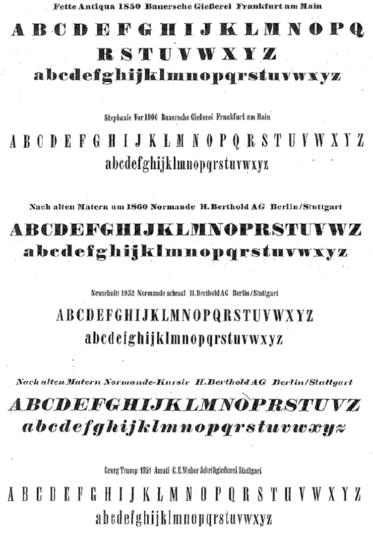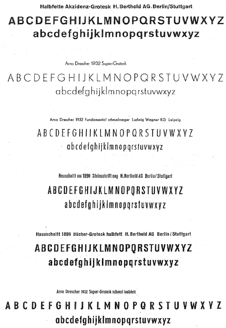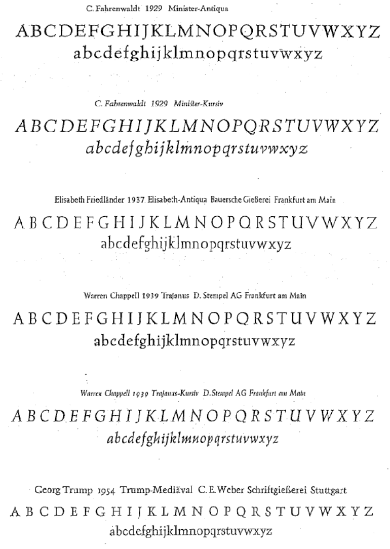 The type specimens found in one of the five volumes of Sonja Steiner-Welz's book published by Reinhard Welz Vermittler Verlag in Mannheim.