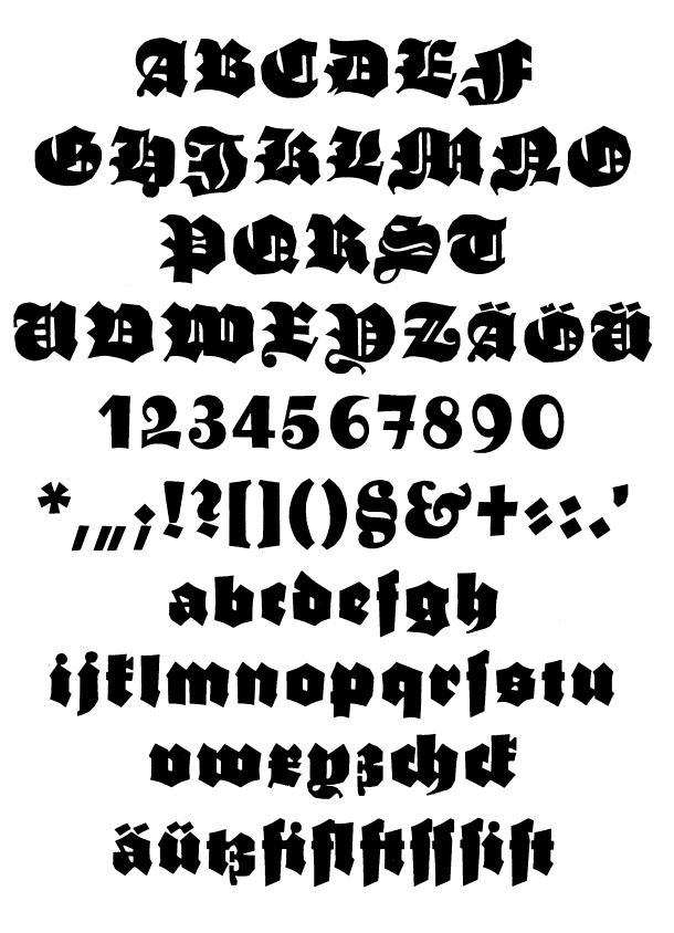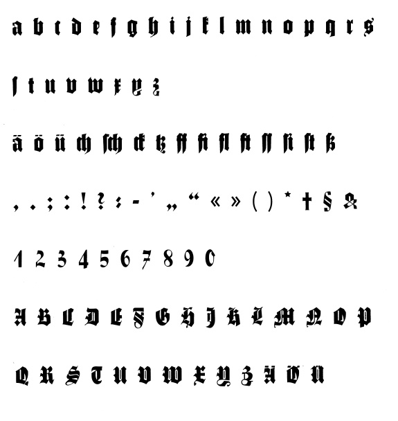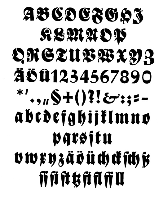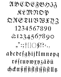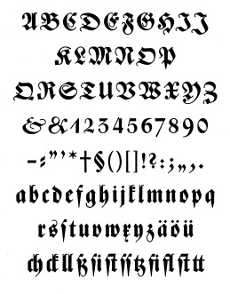 Buchdeutsch (left: Zierbuchstaben).